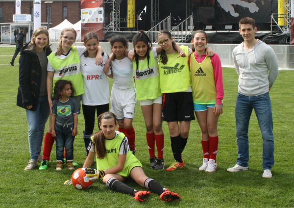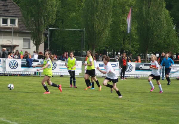 Die kleinen Fußball-Mädels hatten am Maifeiertag ihren ersten großen Auftritt. Im Rahmen des DFB-Pokalfinales der Frauen im Kölner Rhein-Energie-Stadion veranstaltete der DFB auf den Stadionwiesen ein großes Mädchenfußballturnier, an dem neben Vereinsmannschaften auch Schulmannschaften teilnehmen konnten.