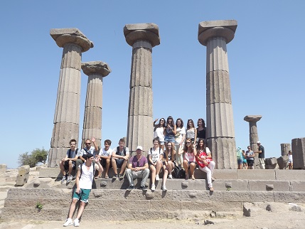 Auch dieses Jahr fand wieder der beliebte Schüleraustausch der EF nach Burhaniye statt. Burhaniye ist eine türkische Stadt am Meer in der Nähe von Izmir und ist vor allem bei türkischen Touristen sehr beliebt. Der ganze Austausch stand unter dem Motto „Schokolade und Oliven – Gastgeschenke unter die Lupe genommen“. In Burhaniye haben wir einiges über Oliven erfahren, aber dazu später mehr. Los ging die Reise für unsere überschaubare Gruppe von sieben Schülern und Schülerinnen der EF, begleitet von Frau Jikeli und Herrn Burow, gegen 1 Uhr morgens am Kölner Flughafen. Wir waren ziemlich aufgeregt, aber als wir dann um 2 endlich in den Flieger konnten, wollte ich nur noch eins: schlafen. Das konnte ich dann auch, denn die Reise dauerte ziemlich lang. Nach zwei Flügen und einem stressigen Umstieg in Istanbul kamen wir aber endlich an. Kaum angekommen, gab es schon das erste Missverständnis. Mein Austauschschüler musste zum Zahnarzt (engl. Dentist) und fragte mich ob ich mitkommen wolle. Da ich dancing (auf deutsch tanzen) verstand, kam ich mit. So käme ich schon mal heraus und könnte ein paar Jugendliche kennenlernen, dachte ich. Die Überraschung war umso größer, als ich mich kurze Zeit später in einem Wartezimmer wiederfand. Das war aber schnell geklärt und den Rest des Tages verbrachte ich in der Stadt und am Strand. Am nächsten Tag traf sich dann die deutsch-türkische Gruppe zum ersten Mal komplett. Bei einer Schulführung wurde viel erzählt und gelacht. Später ging es dann in eine Fabrik der Firma „Laleli“, die vor allem Olivenprodukte herstellt. Dort lernten wir einiges über die Herstellung von Olivenöl, das wie Wein in großen Fässern über Jahre gelagert wird. Die nächsten Tage unternahmen wir weitere Ausflüge, z.B. in die beeindruckenden Tempelruinen von Assos oder in ein Olivenölmuseum. Meine Gastfamilie war sehr offen und gastfreundlich und hat ihr bestes gegeben meine Zeit bei ihnen möglichst toll zu gestalten. Ein weiterer Punkt, die Türkei zu besuchen, ist das Essen. Die türkische Küche ist für alles zu haben, vom normalen Kebap bis hin zu ganzen Fischen bekam ich so ziemlich alles vorgesetzt. Wir alle hatten eine sehr schöne, olivenreiche Zeit in der Türkei und freuen uns auf ein Wiedersehen im November mit viel Schokolade.