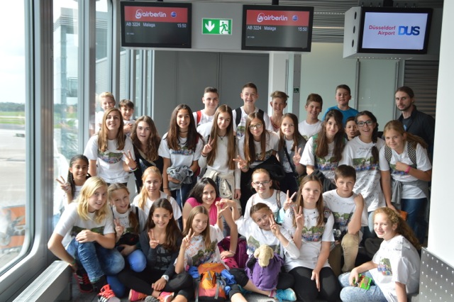 Wir die Klasse 7e haben am 21.09.2015 den tollsten Austausch der Welt erlebt. In Spanien warteten nun die Austauschschüler, die zuvor bei uns in den Familien waren. Am Flughafen angekommen, latschten wir wie eine kleine Entenfamilie Herrn Hartlieb und Frau Cardell hinterher. Habt ihr die Welt schon mal von oben gesehen? Wir schon - und zwar drei Stunden lang und voller Aufregung. In Motril merkten wir, dass sich die ganze Aufregung gelohnt hatte, wir wurden nämlich von den Gastfamilien mit Wunderkerzen herzlich empfangen. Die Wiedersehens-Freude war unendlich groß! Nach so einem aufregenden Tag fielen wir tot-müde ins Bett.