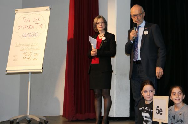 Schulleiterin Birgit Willenbrink und Stellvertreter Alfred Schäfer begrüßten die Gäste in der Aula. |
