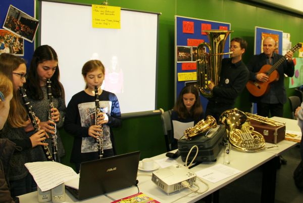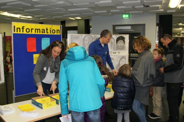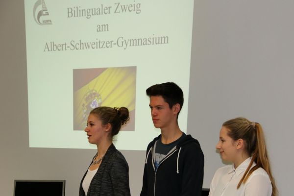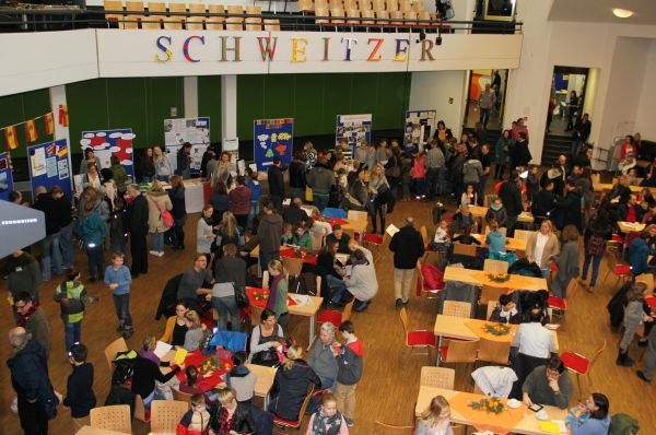 So gab es einen detaillierten Überblick über die Fächer und zahlreiche Stände der Arbeitsgemeinschaften, Fachbereiche und Projekte. Inklusion und Ganztag - zwei Schlagworte, die in jüngerer Zeit wichtige Elemente des Schulalltages am ASG wurden, - aber auch bekannte Aushängeschilder der Schule, wie der deutsch-spanisch bilinguale Zweig und der NIM-Schwerpunkt, präsentierten sich den Besuchern, die in großer Zahl und mit genauso großen Erwartungen gekommen waren. Nach der Begrüßung durch die Schulleitung hatten Eltern und zukünftige Schülerinnen und Schüler die Gelegenheit, einen Eindruck vom ganz normalen Schulalltag zu bekommen und an Unterrichtsstunden wie Deutsch, Englisch, Spanisch, Mathematik, Biologie und Politik teilzunehmen. Im Foyer gab es dann auch noch die Möglichkeit, sich künstlerisch zu betätigen, ein kleines Theaterstück zu sehen und das breite musikalische Angebot der Schule kennenzulernen.