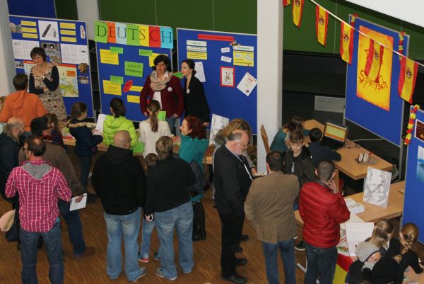 Die Fachbereiche informierten die Besucher umfassend in der Aula über die Unterrichtsfächer. |