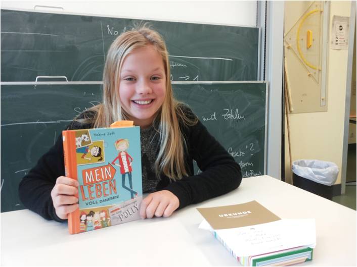 Bei der diesjährigen Schulentscheidung des Vorlesewettbewerbs des Deutschen Buchhandels hat Lotta Merx, Schülerin der 6e, den ersten Platz erreicht. Sie las aus dem Buch „Mein Leben voll daneben“ von Sabine Zett und überzeugte die Jury vor allem mit ihrer lebendigen Interpretation der einfühlsam und witzig erzählten Geschichte um Polly Blume, die nach dem Wechsel auf die weiterführende Schule hofft, endlich eine beste Freundin zu finden.