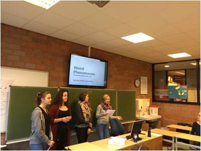 AAm Morgen des 18. Novembers 2015 machten wir, 12 Schüler und Schülerinnen der Stufen Q1 und Q2, uns mit Frau Räcke und Frau Bösader auf den Weg zu unserer niederländischen Partnerstadt Spijkenisse, um mit unseren Austauschschülern gemeinsam an einem Projekt zu arbeiten, das unter dem Motto „Weird animal behaviour“ stand. Neben spannenden Erkenntnissen über Tierverhalten konnten wir außerdem unsere Englischkenntnisse vertiefen. Bereits im Voraus konnten wir Kontakt zu den niederländischen Schülern aufnehmen, weshalb schnell ein freundschaftlicher Umgang entstand. Nach einem freundlichen Empfang durch die Schüler und Lehrer konnten wir uns bei einem gemeinsamen Frühstück und Gruppenspielen besser kennenlernen. Zunächst wurden wir über Spijkenisse und Rotterdam informiert und fingen an in Kleingruppen, bestehend aus zwei deutschen und zwei niederländischen Schülern, Präsentationen zu verschiedenen Tierverhaltensmustern zu erarbeiten, bis wir schließlich in die Familien gingen und uns später wieder zu einem gemeinsamen Abendessen in Rotterdam trafen. Bei einer Rundfahrt auf dem „Pannenkoekenboot“ konnten wir den Rotterdamer Hafen bestaunen.