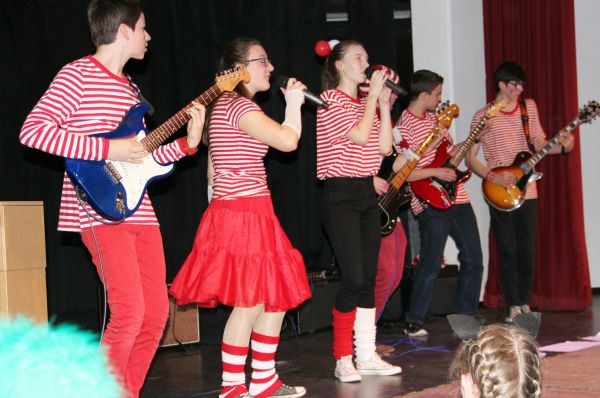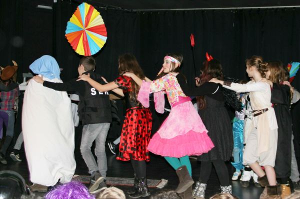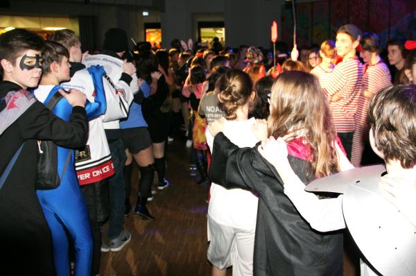 Viele bunte und kreativ gestaltete Kostüme prägten das Bild in der Aula. |