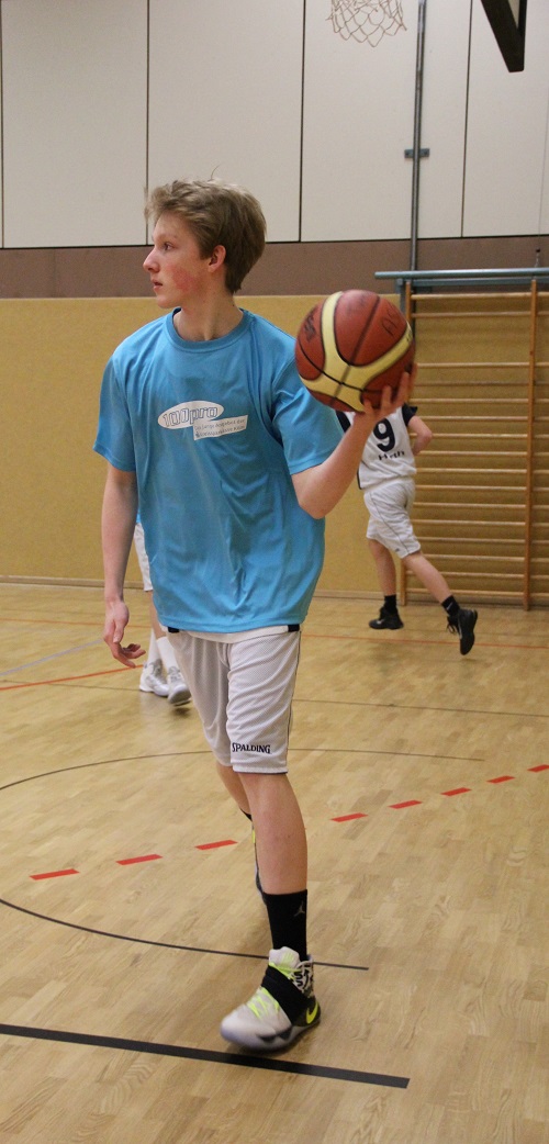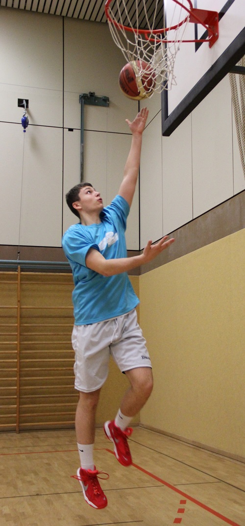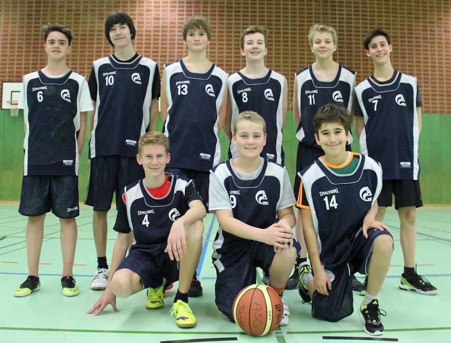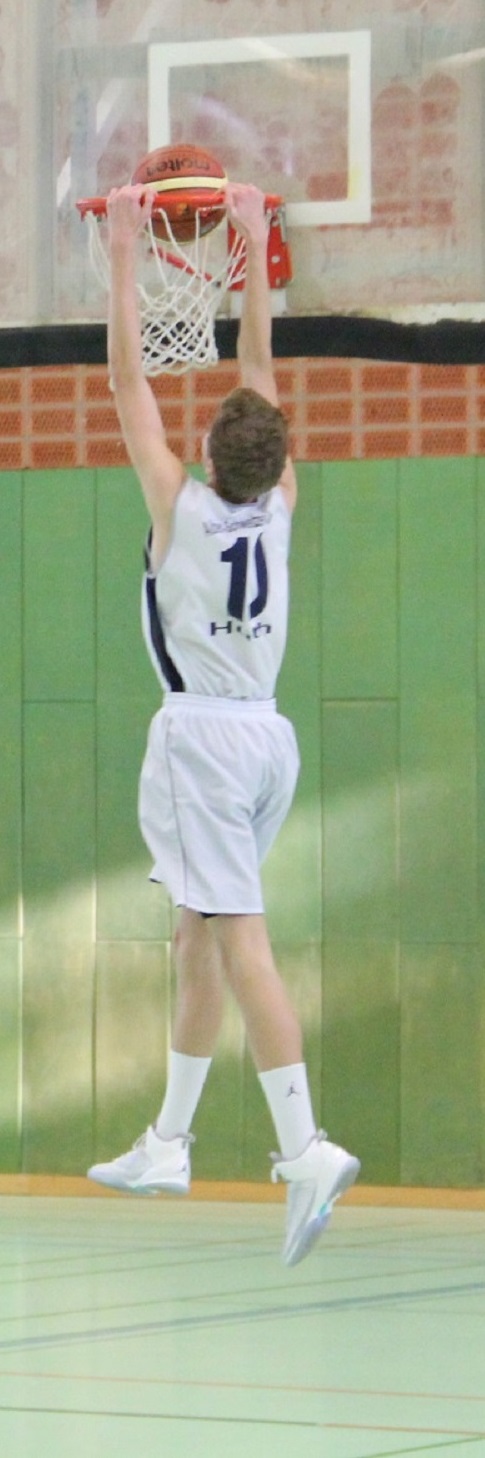 Im Kreisfinale der Wettkampfklasse IV. (Jahrgänge 2003 jg.) siegten vor den Augen ihrer Mitschüler in der ASG-Sporthalle unsere Youngster glaskorbklar mit 69 zu 18 gegen das Käthe-Kollwitz-Gymnasium aus Wesseling. Top-Shooter des Spiels war dabei Kapitän Yannick Pritz aus der Klasse 7e mit 27 Korbpunkten, gefolgt von DER Basketball-Entdeckung der Schulsaison Handballer Timo Larres (7a), der als Center ebenso herausragende 25 Korbpunkte verbuchen konnte und noch 11 Rebounds holte. Den Qualitätsunterschied zu den Gästen machte aus, dass unsere Nachwuchsbasketballer infolge des wöchentlichen Trainings in der AG-Mittagspause über die Vereinsspieler hinaus taktisch clever und erfolgreich im Korbwurf agierten.