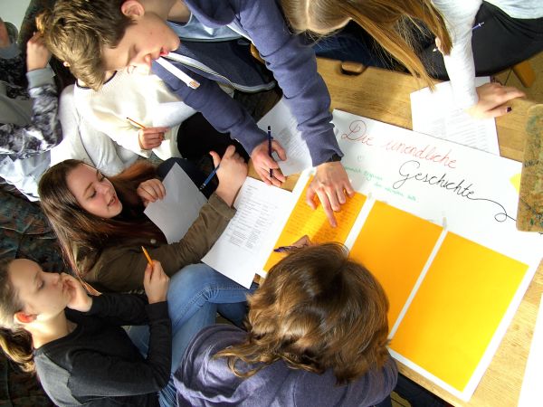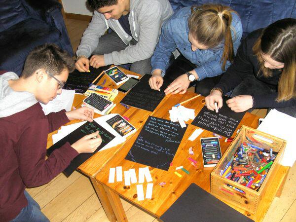 Das erste Halbjahr war vorüber, auf den turbulenten Karneval folgte Zeit für Besinnung. Am Aschermittwoch, dem 10. Februar, machten sich die Schülerinnen und Schüler aus den Katholischen und Evangelischen Religionskursen der EF, begleitet von Frau Oppermann, Herrn Hennig und Herrn Klonowski, auf den Weg in die Eifel an die Bildungsstätte Steinbachtalsperre, um sich an knapp drei Orientierungstagen mit Fragen nach Sinn und Inhalt des Lebens zu beschäftigen. Dazu bot das Kinder- und Jugendzentrum des Erzbistums Köln, mitten im Wald hoch über der Steinbachtalsperre gelegen, genau den richtigen Ort. In fünf Seminargruppen nahmen Schülerinnen und Schüler an kreativen, interaktiven aber auch meditativen Einheiten teil und beschäftigten sich mit Fragen wie "Wer soll dich begleiten?", machten sich Gedanken zu "Dafür bin ich meinen Eltern dankbar" und "Mein Herzenswunsch" und konnten eine "Unendliche Geschichte" schreiben. Am Abend waren alle in den Meditationsraum eingeladen, der von einigen als der schönste Raum des Hauses bezeichnet wird, um zu meditieren und auf eine Traumreise zu gehen. Natürlich blieb auch viel Zeit zum gemeinschaftlichen Tischtennisspielen, Kickern oder Pokern.