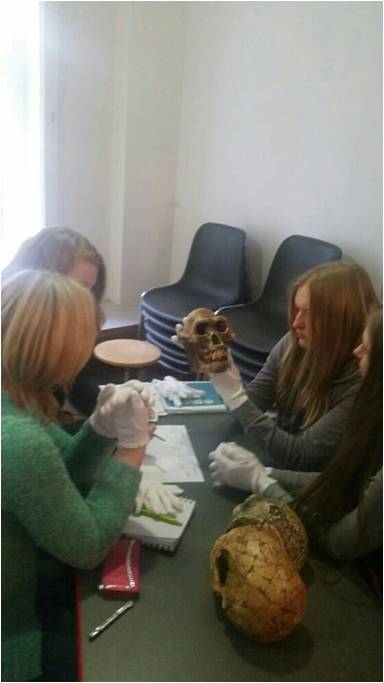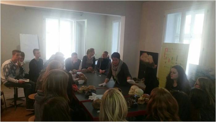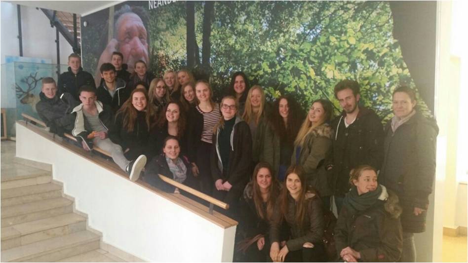 Das Thema, an welchem wir im Rahmen des Austauschs arbeiteten, war „Human Evolution“ – Die Evolution des Menschen, weswegen wir uns am Donnerstag auf den Weg nach Mettmann/Düsseldorf machten, um den Tag im Neanderthalmuseum zu verbringen. Im Anschluss an eine sehr informative Führung durch den Museumsbereich konnten wir unser neu gewonnenes Wissen in einem Workshop in der Steinzeitwerkstatt des Museums anwenden. Hier war unsere Aufgabe, fossile Schädel zu untersuchen und anhand verschiedener Kriterien einen Stammbusch des Menschen zu erstellen. Den Abend ließen wir mit einem gemütlichen Beisammensein ausklingen.