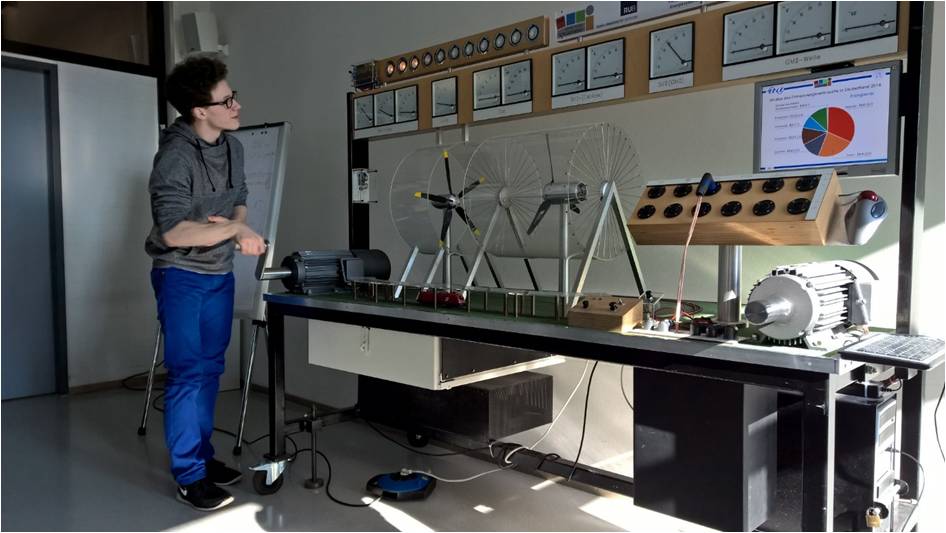 Der weltweite Energiebedarf steigt: Entscheidend ist heute, Energie so effizient wie möglich umzuwandeln (zum Beispiel in elektrischen Strom oder in Heizwärme) und sie anschließend so schonend und sparsam wie möglich einzusetzen. Am 25.02. fand daher für den NIM-Kurs der neunten Klasse im Rahmen des Physikmoduls eine Exkursion ins Alfried-Krupp-Schülerlabor in Bochum statt. In dem Gemeinschaftsversuch experimentierten unsere Schülerinnen und Schüler mit drei derzeitigen und zukünftigen Systemen der Energieumwandlung und verglichen sie: Brennstoffzelle, Dampfturbine und Windkraft. Der Gesamtversuch bestand aus drei Abschnitten: In den ersten beiden Teilen machten unsere Teilnehmer gruppenweise Versuche mit der Brennstoffzelle und der Windkraft am Modell. In abschließenden Fachgesprächen und weiterführenden Diskussionen verglichen die Teilnehmer die verschiedenen technischen Systeme unter anderem im Hinblick auf ihren Wirkungsgrad. Verbunden wurde hier modernes Know-how aus den Ingenieurwissenschaften mit den mathematischen und physikalischen Grundprinzipien der Energieumwandlung.