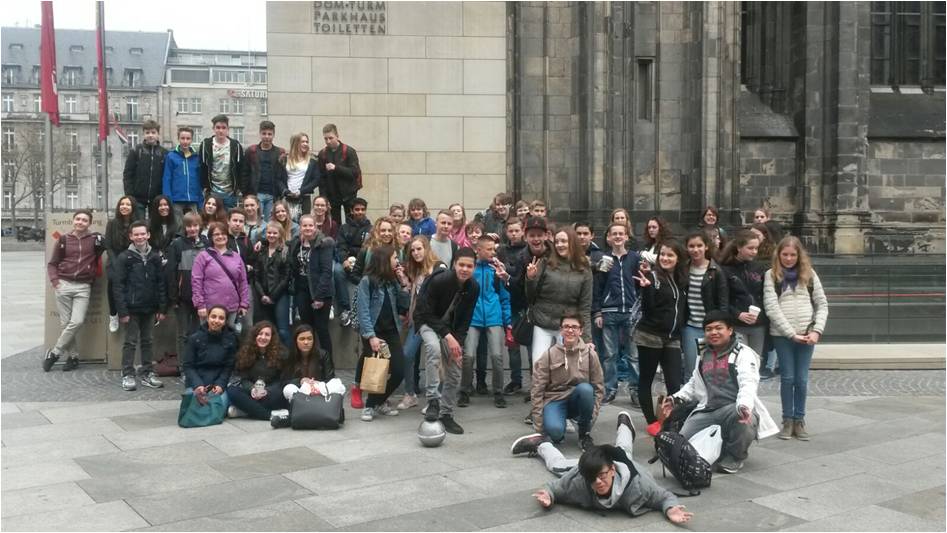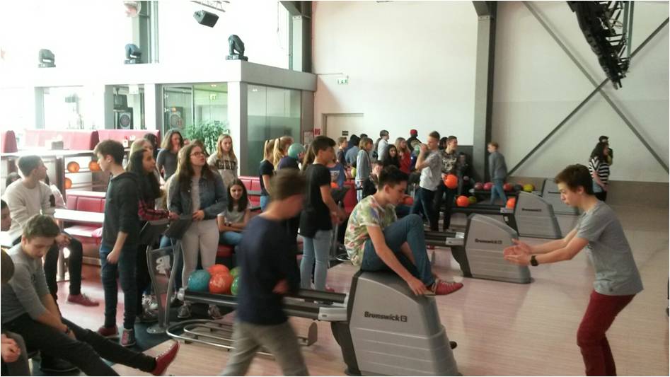Am 12.04.16 durften wir, die Schüler der Stufe 8 und des Kurses Interkulturelle Projekte unsere Austauschschüler begrüßen. Die Austauschüler kamen aus Holland (Spijkenisse). Zunächst zeigten wir ihnen die Schule und sie waren sehr erstaunt wie groß sie ist. Dann haben wir mit ihnen gemeinsam ein paar Kleinigkeiten(Brötchen, Aufstrich usw.) gegessen. Anschließend sollten wir uns beim Bowlingcenter 10pin bei einer einstündigen Bowlingpartie besser kennen lernen. Nun holten uns die Eltern ab und man durfte den Nachmittag selbst gestalten. Einige gingen in Gruppen Fußball spielen andere gingen shoppen oder zeigten ihnen ihren Heimatort. Auch den Abend konnte man frei gestalten. Die meisten gingen irgendwo essen. Am zweiten Tag mussten wir früh aufstehen, denn wir wollten um 9 Uhr mit der Bahn nach Köln fahren. Nach einer längeren Fahrt kamen wir an. Und zeigten ihnen als erstes den Kölner Dom, das Wahrzeichen Kölns. Nach einer anstrengenden Dombesteigung, durften wir in kleine Gruppen durch Köln gehen. So hatten wir die Gelegenheit ihnen alles zu zeigen und zu essen. Als wir wieder zusammenkamen durfte man zwischen Sport und Schokoladenmuseum entscheiden. Während also nun die einen auf dem Dach des Sportmuseums Fußball (Deutschland : Holland 8:2) spielten, konnten die anderen ihre eigene Schokolade herstellen. Nach dem eventreichen Tag gestaltete man sich den Abend selbst. Am letzten Tag gingen wir wieder in die Schule und die Austauschschüler erlebten noch eine Schulstunde mit. Dann verabschiedeten wir uns. Die Zeit ging schnell vorüber war aber trotzdem sehr schön. Wir freuen uns schon auf Ende Mai, wenn wir nach Spijkenisse fahren.