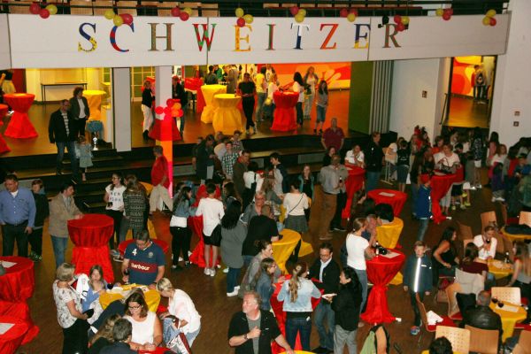 Gleich zwei Jubiläen gab es in der spanischen Nacht am 15. Juni zu feiern: der deutsch-spanisch bilinguale Zweig des ASG führt seit 25 Jahren den Schüleraustausch mit San Sebastian und seit fünf Jahren auch mit Motril durch. Da dies in der Noche Aniversario gebührend gefeiert werden sollte, war es durchaus beabsichtigt, dass den zahlreichen Gästen, die gekommen waren, das Ambiente spanisch vorkam. Ganz in den Farben der spanischen Flagge gehalten, verlieh die rot-gelbe Dekoration und Beleuchtung der Aula eine mediterrane Atmosphäre.