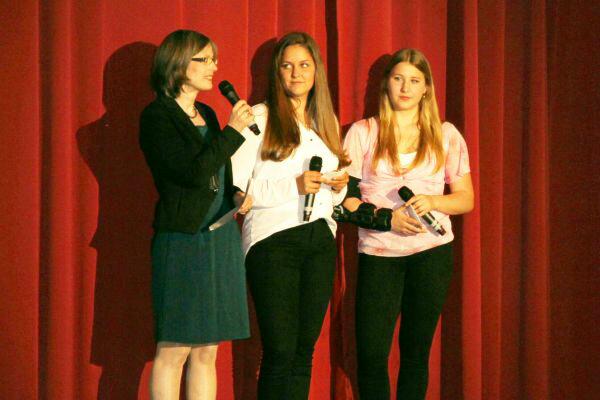 Die Gäste füllten die spanisch anmutende Aula und wurden von Schulleiterin Frau Willenbrink sowie den Schülerinnen Julia Hennig und Cecilia Lawnik aus der Q1 begrüßt.