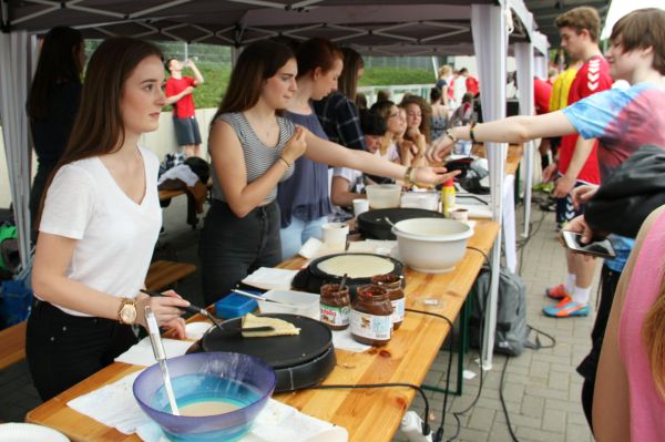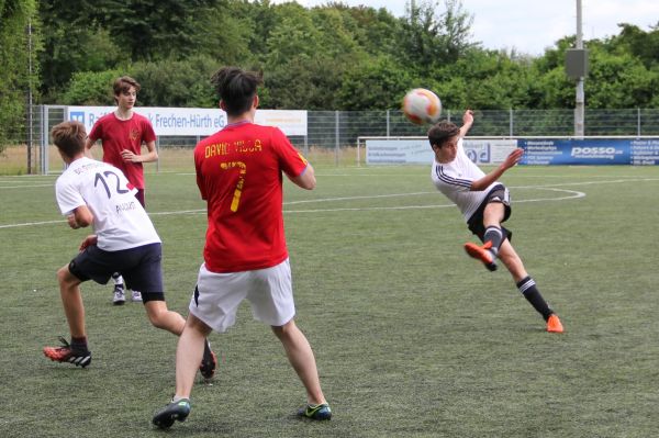Sport hat am ASG schon immer einen hohen Stellenwert. Am 22. Juni gab es aber ein Sportereignis ganz besonderer Art, das die SV organisiert hatte. Mehrere Schülermannschaften des ASG traten in einem Fußballturnier gegen einander und gegen Mannschaften bestehend aus Flüchtlingen an, die in Hürth untergebracht sind. Diese Aktion erwies sich als unterhaltsamer Akzent im Endspurt des Schuljahres, den viele Klassen und Kurse unserer Schule nicht versäumen wollten. So war das mehrere Stunden gehende Turnier stets gut besucht von Schülerinnen und Schülern, die eine Vertretungsstunde hatten oder aber ihre Lehrer überreden konnten, an den Kunstrasenplatz hinter der Schule zu gehen und die Mannschaften anzufeuern. Der ehemalige ASG-Schüler Lukas Genschel moderierte die Veranstaltung, aktuelle Schülerinnen und Schüler verkauften Brötchen und Crepe. So wurde dieser Schultag zu einem richtigen Highlight des ausklingenden Schuljahres, das zudem einen hohen symbolischen Wert hatte: Integration funktionierte hier problemlos durch Sport und Spiel.
