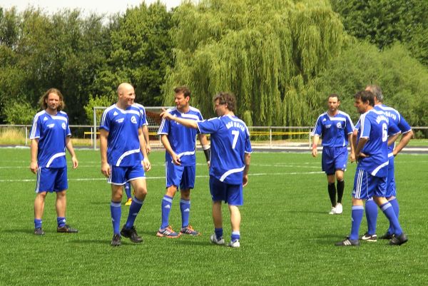 Die Lehrermannschaft berät sich noch, kurz darauf folgte ein spannendes und torreiches Spiel gegen die Schüler. |