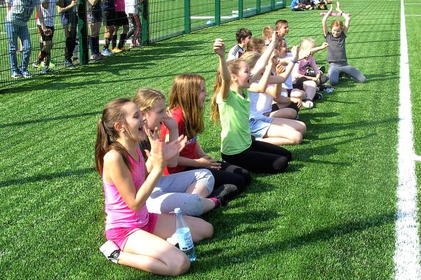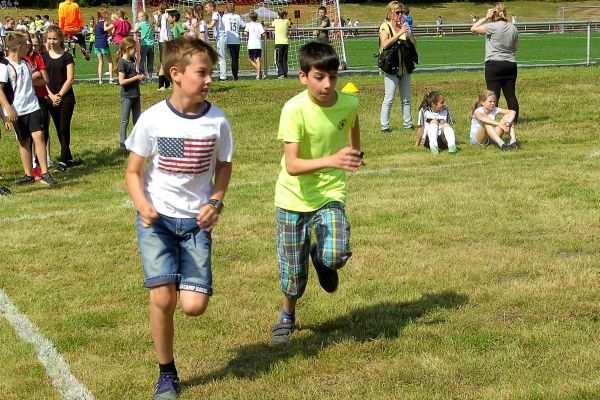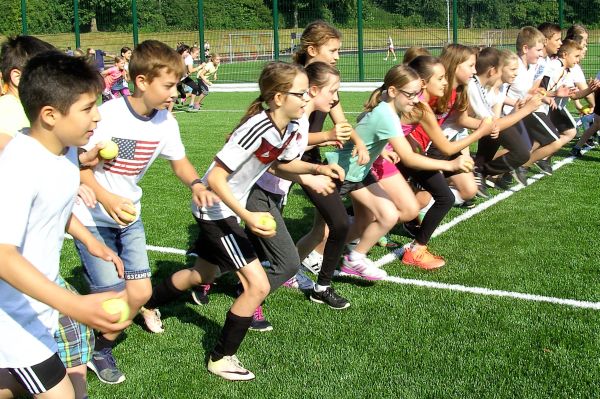 Traditionell traten die Klassen 5 und 6 jeweils in vier Disziplinen gegeneinander an: Balltransport, Pendelstaffel, Fußball und Brennball. Zeitgleich gab es für die Schülerinnen und Schüler der Mittelstufe zahlreiche sportliche Workshops, die von Lehrer- und Schülerseite angeboten und betreut wurden, während sich die Oberstufe außerhalb der Schule sportlich betätigte. Es wurden großartige Ergebnisse erzielt, die auf Urkunden dokumentiert und den Sportlerinnen und Sportlern bei der Siegerehrung überreicht wurden. Das Sportfest endete nach alter Tradition mit dem Fußballduell Lehrer gegen Schüler. Deutete sich aus Lehrersicht hier bereits an, dass noch am selben Tag die deutsche Fußballnationalmannschaft ihr EM-Halbfinale verlieren würde? Denn auch den Lehrern erging es nicht besser, sie mussten sich mit 2:5 geschlagen geben. Das tat aber der Stimmung insgesamt keinen Abbruch, und so konnten alle, insbesondere die Organisatoren dieses Tages, am Ende auf eine gelungene Veranstaltung zurückblicken und tags darauf entspannt in die Sommerferien gehen.