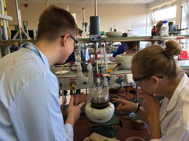 Während unseres Versuchs hatten wir uns eine Mittagspause in der Kantine des Unternehmens verdient. Dort gab es köstliches Essen und man konnte die Pause mit seinem Kurs weiterhin genießen.Im Allgemeinen kann ich sagen, dass es eine interessante Erfahrung war einen Stoff, der eine aufwendige Prozedur erfordert, selbstständig herzustellen. Es ging weit über den Rahmen des Chemie-Unterrichtes hinaus und hatte somit einen noch größeren Reiz für mich und meinen Kurs.