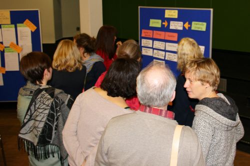 Zunächst ging es um eine Bestandsaufnahme. "Stimmen aus der Schulgemeinde" äußerten sich dazu, was für sie einen respektvollen Umgang ausmacht. In den anschließenden Tischgesprächen und Workshops wurde dann an konkreten Aspekten, die dieses Thema betreffen, gearbeitet. Hierzu wurden Handlungsalternativen entworfen, wie man in Bezug auf Unterrichtsstörungen, Streitschlichtung, Gespräche mit Eltern und Vereinbarungen am ASG einen respektvollen Umgang sicherstellt bzw. mit Respektlosigkeit in den verschiedenen Bereichen umgeht, so dass das ASG als Lebensraum wahrgenommen werden kann. Die Ergebnisse wurden auf Postern festgehalten, in der Aula ausgestellt und hinterher im Plenum diskutiert. In einem weiteren Schritt will sich die Schulgemeinde auf Vereinbarungen verständigen, die einen respektvollen Umgang am ASG in den unterschiedlichen Feldern des Schulalltags fördern.