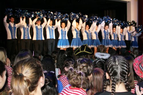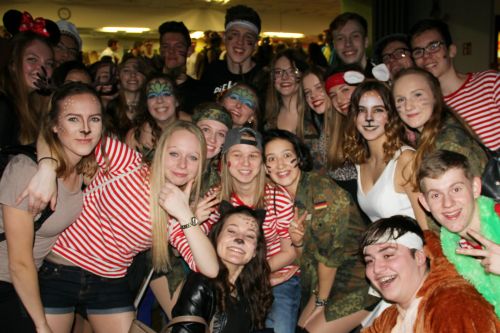 Es gab Tanzeinlagen sowohl von Klassen als auch von zwei professionellen Karnevalsgruppen, in denen die Oberstufenschüler Julia Ippen, Laureen Commer und Maximilian Hoff mittanzten. Musikbands heizten der Schulgemeinde ordentlich ein, bevor es gegen 12.00 Uhr zum traditionellen Höhepunkt der Veranstaltung kam, dem Männerballett. Die Bühne war in düsteres Schwarzlicht getaucht und durch die johlende Menge drang das dröhnende Intro des Klassikers "Seven nation army". Als dann einer der Tänzer als Justin Bieber Double auf einem Wagen auf die Bühne geschoben wurde, schäumte die Schülerschaft fast über. Kein Wunder, dass die Männerballetttruppe um eine Zugabe nicht herumkam, und so endete die Veranstaltung mit dem Karnevalskracher "Polka, Polka, Polka". Eine gelungene Feier ging zu Ende, und für viele war dies sicher nicht die letzte Party im Karneval 2017.