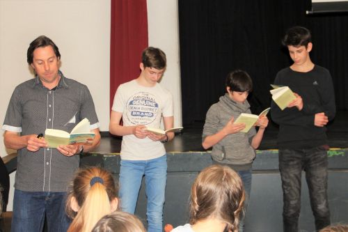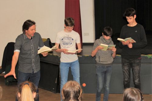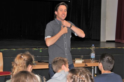 The lecture by David was great. He interacted a lot with the students, spoke to them in English and German, it was always funny and never boring. We especially liked how he read from the novel, showed us short films (there are QR codes in the novel!) so we could imagine the setting and characters better. And some boys and girls even went on stage to read with him!