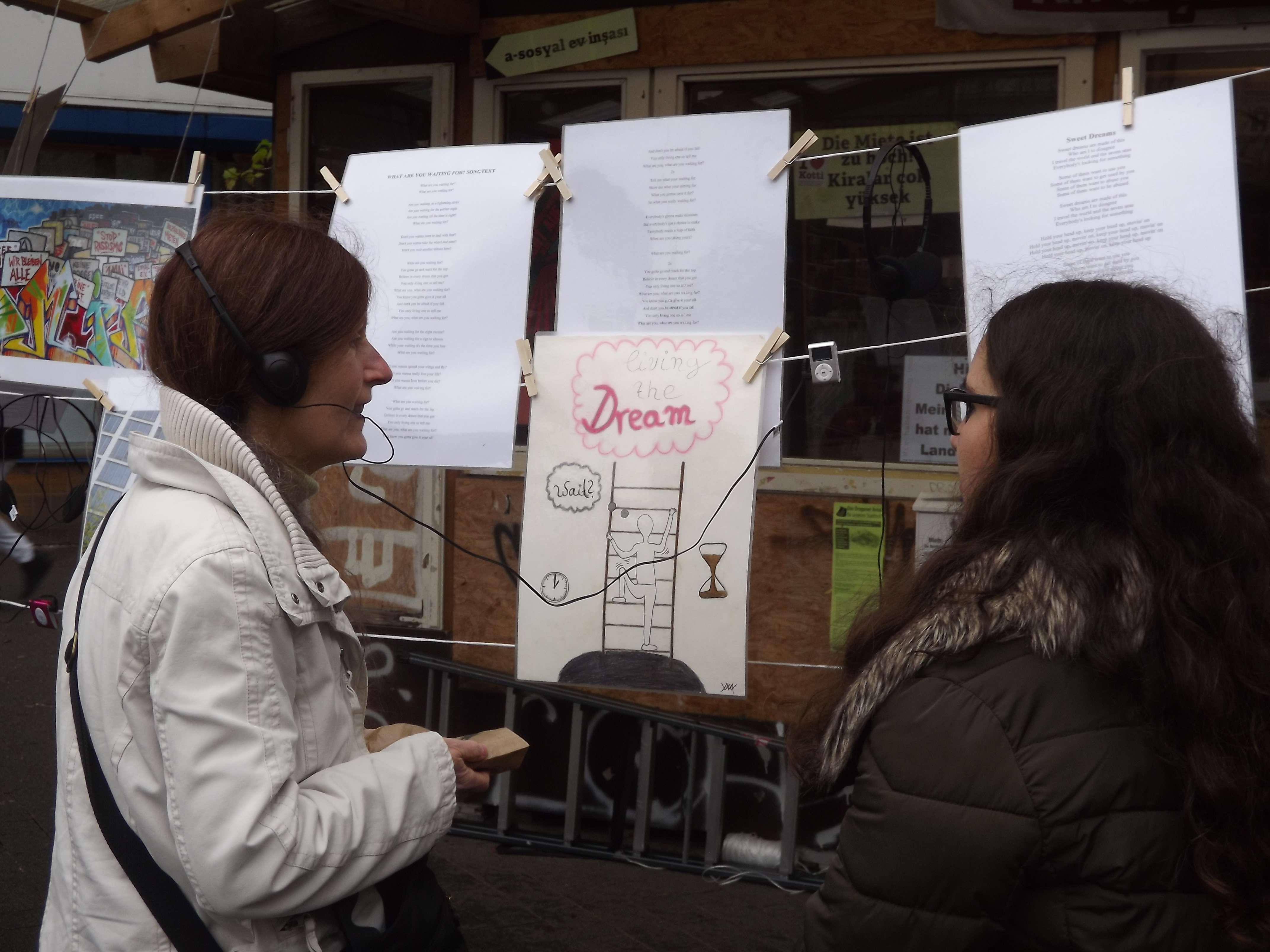 An historisch bedeutsamen Orten wie der Eastside Gallery führten die Schüler/innen Interviews mit Passanten durch, um etwas über deren materielle und immaterielle Träume, ihre Kindheitsträume und das Verhältnis zwischen Traum und Realität zu erfahren. In Arbeitsgruppen bearbeiteten und schnitten die Teilnehmer/innen die Interviews unter Anleitung zweier Berliner Filmemacherinnen. Schließlich wurde die Ausstellung „Museum der Träume“ im Herzen Kreuzbergs an einem öffentlichen Raum installiert, wo die Schüler/innen mit interessierten Berlinern über die eigenen Träume und die anderer Menschen ins Gespräch kamen.