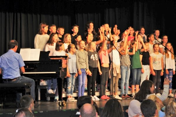 Singeklasse und Schulleiterin Frau Willenbrink hießen die neuen Fünftklässler und ihre Eltern willkommen. |