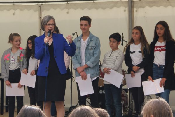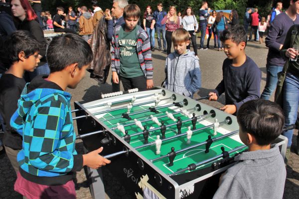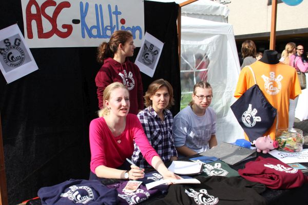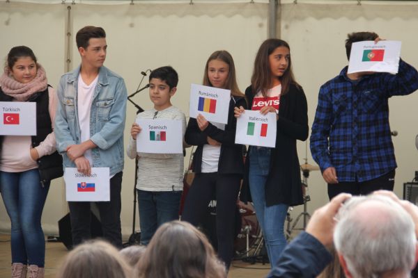 Am frühen Morgen sah es draußen noch sehr grau und schon sehr herbstlich aus; nicht ungewöhnlich für Ende September. Doch es kam, wie der stellvertretende Schulleiter Herr Schäfer es prophezeit hatte: am 23.09. ist schönes Wetter! Und so konnte Schulleiterin Frau Willenbrink um 11:00 Uhr das ASG Schulfest 2017 bei Sonnenschein eröffnen. Schülerinnen und Schüler begrüßten Eltern, Lehrer, Mitschüler und viele Ehemalige in den Sprachen der Herkunftsländer der Schülerschaft. Es sollte ein Tag mit vielen Angeboten, Spielen, Unterhaltung und leckerem Essen werden.