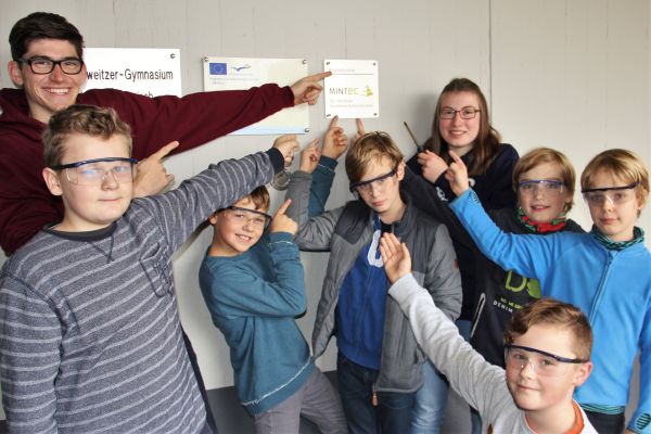 Seit ein paar Wochen ist das ASG offiziell MINT-EC Schule, worüber auf der ASG Homepage bereits berichtet wurde. Nachdem Schulleiterin Frau Willenbrink und die Leiterin des NIM-Zweiges Frau Goost schon vor einiger Zeit die Auszeichnung dafür in Empfang genommen hatten, ist dies nun auch für alle deutlich sichtbar, denn am 9. November brachten Schülerinnen und Schüler eine Plakette an die Außenmauer der Schule an, die diesen wichtigen Schwerpunkt unserer Schule ausweist. Um diesen Zweig besser kennenzulernen, hatten die Schülerinnen und Schüler der Stufe 5 nun die Gelegenheit, in die naturwissenschaftlichen Fächer hineinzuschnuppern.