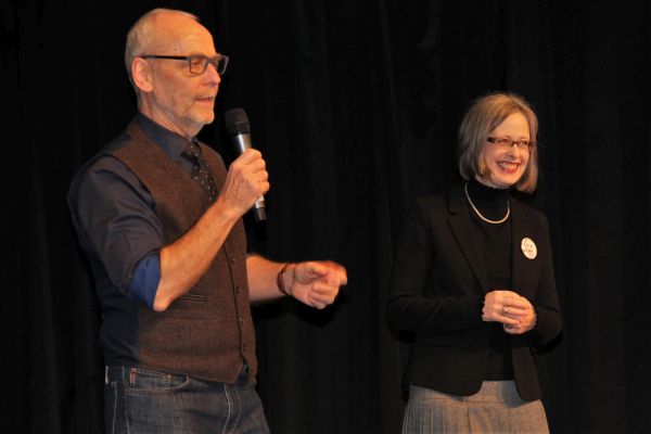 Schulleiterin Frau Willenbrink und Stellvertreter Herr Schäfer begrüßten die Gäste, die zahlreich gekommen waren. |