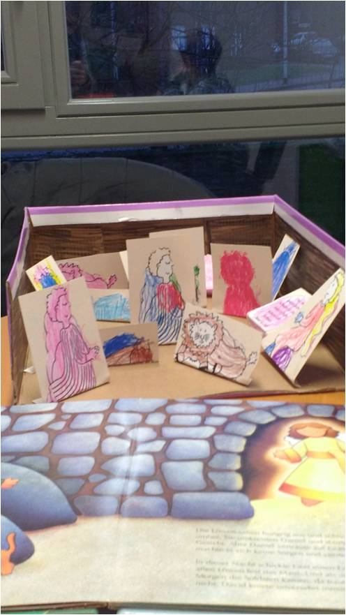 Mein Projekt führe ich in der evangelischen Kindertagesstätte Löwenherz in Frechen durch. Dort biete ich einer kleinen Gruppe von Kindern unterschiedlichen Alters eine wöchentliche Bibelstunde an. Wir thematisieren jedes Mal eine andere Geschichte aus der Bibel. Nach einer Erarbeitung der Geschichte auf jeweils unterschiedliche Weise, erstelle ich mit den Kindern etwas, das die Kinder mitnehmen oder verschenken können. Manchmal basteln oder malen wir etwas, manchmal spielen wir thematisch passende Spiele dazu oder spielen die Geschichte selber nach, um den Kindern ein besseres Verständnis für die Geschichte zu vermitteln und auf ihre Lebenswelt zu übertragen.