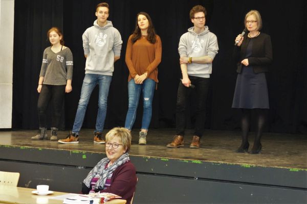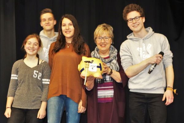 Am 22.02.2018 haben wir, die SV, und alle Klassensprecher sowie Stufensprecher uns in der Aula versammelt, um den großartigen Betrag von 27304,- €, den wir beim Spendenlauf vergangenen Oktober gesammelt hatten, zu übergeben. Zu Gast war die Vorsitzende des Fördervereins für krebskranke Kinder Köln e.V., der wir symbolisch ein Sparschwein mit einem Betrag von 25.000,- € stolz übergeben durften.