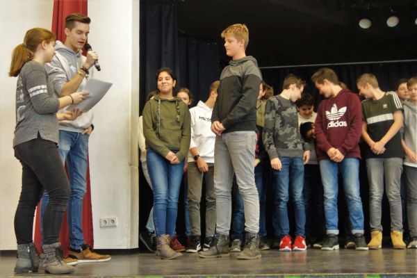 Schülerinnen und Schüler, die beim Spendenlauf besonders viel Geld erlaufen hatten, wurden geehrt. |