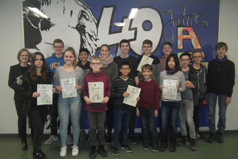Bei der Mathematik-Olympiade haben sich 23 Schüler der Klassen 5 bis Stufe Q2 für die zweite Runde (Regional-Runde) qualifiziert, davon gab es viele erste bis dritte Preise.