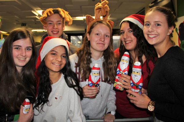 Am Nikolaustag konnte man im Schulgebäude viele Gestalten sehen: Nikoläuse (teils mit E-Gitarre), Rentiere, Engel und Knecht Ruprecht. Nach guter ASG-Tradition hatten SV und die Q2 adventliche Aktionen geplant. So zogen die Schülerinnen und Schüler der SV durch die Klassen und verteilten Spekulatius, wofür sie sich von den Klassen und Kursen Adventslieder vorsingen ließen. Das Q2-Team teilte Schokoladennikoläuse an diejenigen Schülerinnen und Schüler aus, denen andere damit einen kleinen Adventsgruß senden wollten. Beide Aktionen sorgten dafür, dass die Nikolaustradition bei uns sehr lebendig ist und – genau wie die Frühschicht am 13. Dezember um 6:30 Uhr – die Adventszeit am ASG bereichert.