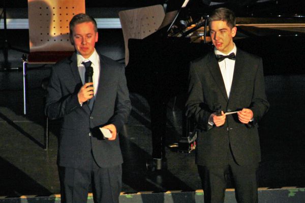 Es folgten viele Ohrwürmer, wie "Aber bitte mit Sahne" von Udo Jürgens und "Viva la vida" der Gruppe Coldplay, aber auch andere bekannte Klassiker, z.B. "New York, New York" und diverse Songs aus dem Musical "West Side Story". Tim und Jesko aus der Q1, die unterhaltsam durch das Programm führten, kündigten u.a. Aufführungen der Singe- und Bläserklassen der Stufen 5 und 6, des Mittelstufenchores, der ASG Concert Band und des ASG-Vokalensembles an. Neben viel Peppigem sorgte der Lehrerchor mit John Lennons "Imagine" für einen gefühlvollen Abschluss der ersten Konzerthälfte. Bei dieser bunten Mischung an Darbietungen machte es gar nichts, dass das bekannte Weihnachtslied "Jingle bells", aufgeführt von der Bläserklasse der Stufe 5, nicht mehr ganz in die Jahreszeit passte. Das Finale gestaltete wie üblich der Vokalpraktische Kurs der Q1, der zusammen mit dem IP-Kurs drei mitreißende Stücke darbot.