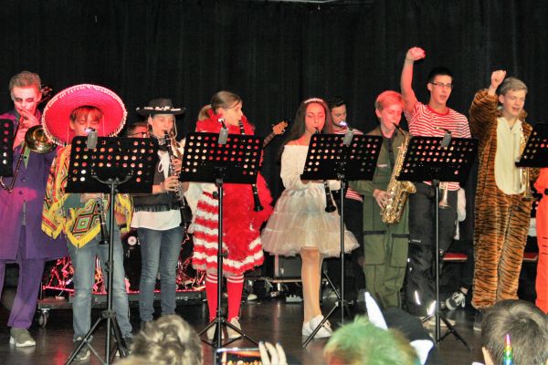 Es war bereits der letzte Tag im Februar, da verwandelte sich die Aula der Schule in eine große Partyhalle; Karneval war angesagt. Wie immer an Weiberfastnacht gab es eine bunte Karnevalsfeier mit vielen unterhaltsamen Darbietungen. Die ASG Bigband machte den Anfang, gefolgt von Tanzgruppen, Klassen, dem Dreigestirn und der SV, die die Veranstaltung großartig vorbereitet hatte.