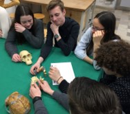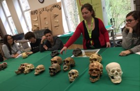 Am nächsten Morgen fuhren wir mit dem Bus ins Neanderthal Museum in Mettmann. Dort machten wir zunächst eine Führung durch das Museum durch die wir eine Zeitreise bis vier Millionen Jahre vor unserer Zeit machten und so die Evolution hautnah miterleben durften. Danach gab es eine kleine Mittagspause und wir durften uns im Museumshop umgucken, als auch schon der nächste Programmpunkt anstand. Wir hatten einen Workshop und durften uns mit Modellen der Schädel unserer Vorfahren auseinandersetzen. Unsere Aufgabe war es, die Schädel auf wichtige Eigenschaften, wie das Foramen Magnum, zu untersuchen und die verschiedenen Schädel in die zeitlich korrekte Reihenfolge zu bringen. Nach dem spannenden Museumsbesuch fuhren wir mit dem Bus in die Kölner Innenstadt, wo wir den Austauschschülern unsere Lieblingsorte und Läden zeigten. Am späteren Abend sind wir gemeinsam in einem italienischen Restaurant essen gegangenen. Danach sind wir nach Hause gefahren und waren froh, nach einem langen Tag müde ins Bett zu fallen. Freitagmorgen trafen wir uns erneut in der Schule und stellten unsere Präsentationen fertig. Zusätzlich konnten wir nun nämlich die neu gelernten Informationen aus dem Museum mit einbeziehen. Schließlich stellte jede Gruppe ihre Präsentation vor. Anschließend mussten wir Abschied von unseren Austauschschülern nehmen. Wir hoffen jedoch sehr, dass es ein Wiedersehen mit den Austauschschülern geben wird.