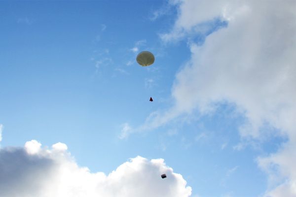 Der Wetterballon hob samt Styroporkiste und Fallschirm ab und begann seinen Flug bis in die Stratosphäre. |