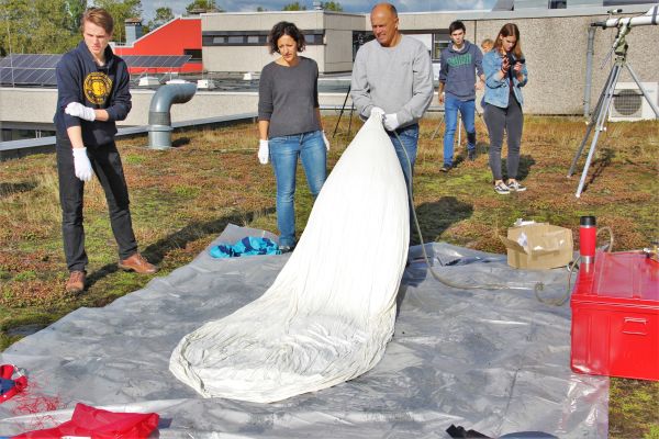Trockenes Wetter und ein wolkenarmer Himmel, das waren die Voraussetzungen für den geplanten Flug eines Ballons an den Rand des Weltalls. Danach sah es am regnerischen Morgen des 2. Oktober allerdings so gar nicht aus, doch das sollte sich im Laufe des Vormittags ändern, und pünktlich um 11:00 Uhr konnte es losgehen. Unter dem Motto "Das ASG hebt ab!" versammelten sich alle Schülerinnen und Schüler sowie das Lehrerkollegium auf dem Schulhof bzw. in der Mensa, um Zeugen eines großartigen Experiments zu werden: des Fluges eines Wetterballons in die Stratosphäre.