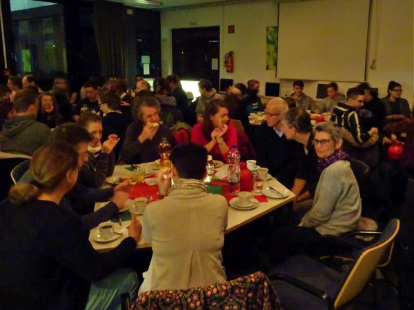 Viele Schülerinnen und Schüler, Lehrerinnen und Lehrer sowohl vom ASG als auch vom EMG, Eltern, Mitglieder aus Hürther Gemeinden sowie Ehemalige der ASG-Schulgemeinde waren am frühen Morgen des 12. Dezember in die Schule gekommen, um bei Musik und Kerzenschein ein bisschen vorweihnachtliche Stimmung zu erleben. Impulse aus Schüler- und Lehrerschaft sowie vom katholischen Pfarrer Kremer und dem evangelischen Diakon Oppenberg regten zum Nachdenken darüber an, wie sich die oftmals so stressige und terminbeladene Adventszeit entschleunigen lässt. Und so wurde diese feierliche Stunde selbst zu dem, was das Thema vorgab: ein Freiraum in der Hektik des Advent, eine Leerstelle, die Raum für Ruhe und Besinnlichkeit zuließ. Das anschließende Frühstück bot Zeit zum Austausch und entspannten Beisammensein, bevor die Gäste sich wieder in ganz unterschiedliche Richtungen auf den Weg machten.