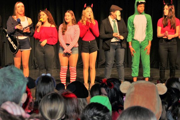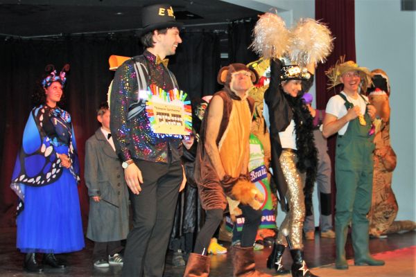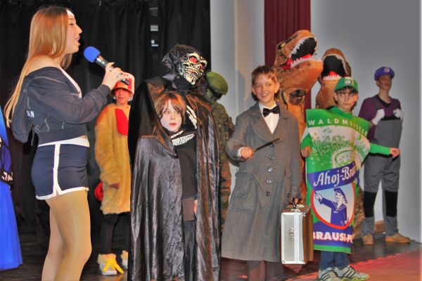 Kurz nach Begin der dritten Stunde rief die SV die Schulgemeinde in die Aula, wo in alter Tradition die Karnevalsveranstaltung stattfand. Diverse Tanzgruppen aus der Erprobungsstufe bis zur Q2 sorgten für Stimmung und gute Laune. Sehr einfallsreich und kreativ waren in diesem Jahr auch wieder die Kostüme. Die SV prämierte auf der Bühne diejenigen, deren Verkleidungen vom Publikum mit dem lautesten Applaus (und Jubel) bedacht wurden. Von gruseligen Gestalten, die ihren eigenen Kopf unterm Arm trugen, bis hin zu meterhohen Dinosauriern war so ziemlich alles vertreten. Krönender Abschluss war, wie immer, das Männerballett, bestehend aus Oberstufenschülern und Lehrern, das es mit Tanzeinlagen von "König der Löwen" über Billie Eilish bis hin zu "Dance monkey" wieder einmal zu choreographischen Höchstleistungen brachte.