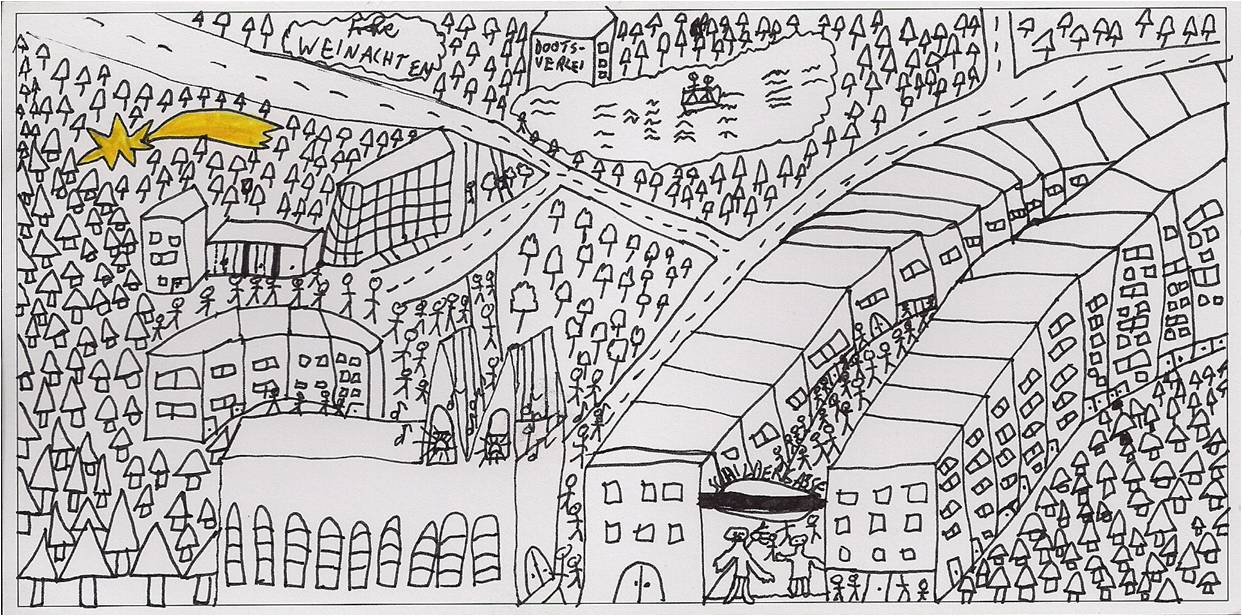 Alle Kinder und Jugendliche waren aufgerufen, Blanco-Weihnachtskarten im Verlag M. DuMont Schauberg zu bestellen und zurückzuschicken, damit der Verlag sie zu Weihnachten an Geschäftspartner verschicken kann.