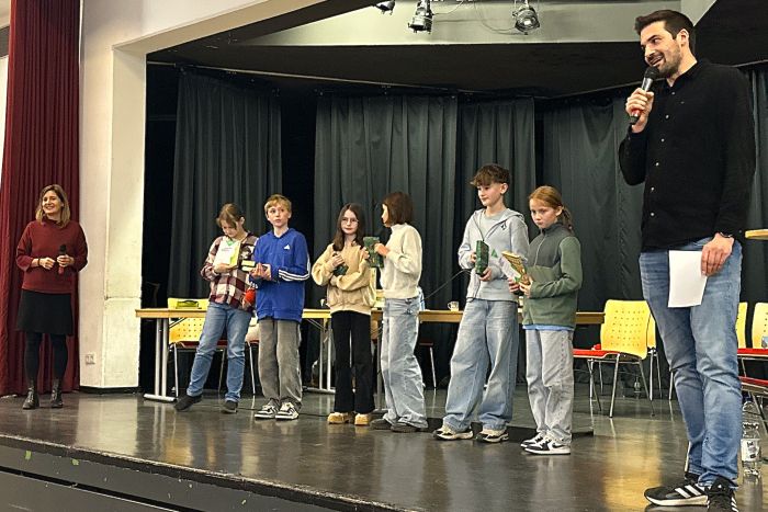 Am 10. Dezember 2025 fand in der Aula der Vorlesewettbewerb der Stufe 6 statt. In den Deutschstunden zuvor hatten alle 6. Klassen jeweils einen kleinen Klassenwettbewerb durchgeführt, um ihre Klassensiegerinnen und Klassensieger für das Schulfinale zu ermitteln.