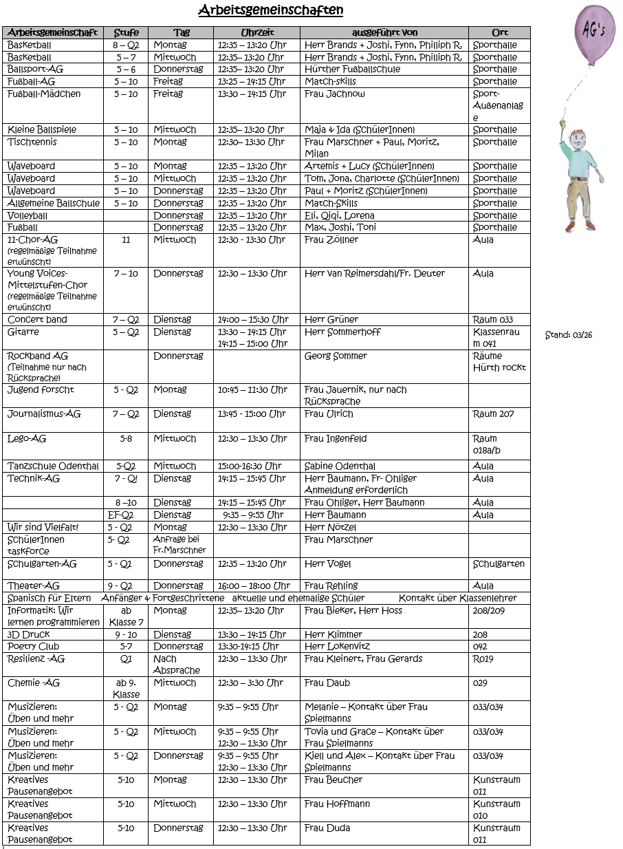 An vielen Schulen in NRW werden Elemente des Ganztages von einem externen Partner organisiert. Damit wir, ganz im Sinne unseres Leitspruches “Wir am ASG”, unsere individuellen Bedürfnisse und Gestaltungswünsche der Schulgemeinde optimal umsetzen können, haben wir einen eigenen Ganztagsverein gegründet. So können sowohl unterrichtliche Vorhaben aus dem Schulleben, als auch sämtliche außerunterrichtlichen Angebote koordiniert werden und laufen zentral zusammen.