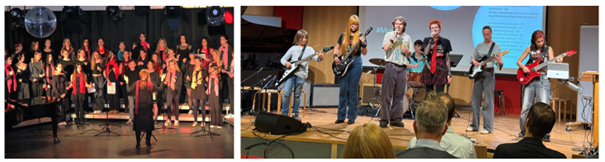 Die Musik hat einen sehr großen Stellenwert an unserer Schule. Sie ist bei allen offiziellen Veranstaltungen präsent und es gibt im Jahr mehrere Gelegenheiten auf der Bühne zu stehen. Unser Anspruch ist, dass die bei allen Schülerinnen und Schülern unserer Schule mindestens zweimal gelingt.